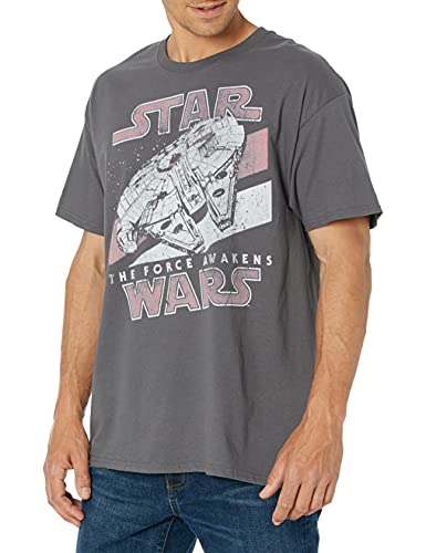 Star Wars Mäns The Force Awakens Millennium Falcon Vintage T-shirt, Träkol, L