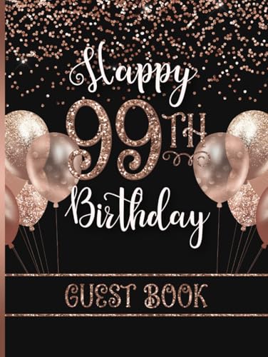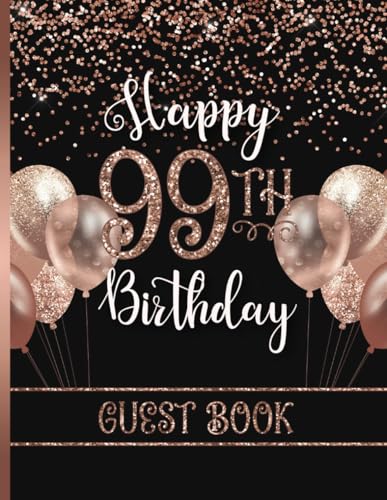 Happy 99th Birthday Guest Book: Large Party Sign-In Book for Ninety-Nine Year Old Women with Gift Log | Keepsake for Her | Rose Gold & Black Design with Faux Glitter