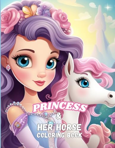 Princess and her horse Coloring Book: 37 Pages of Charming Cartoon Princess and her horse, fun magical activity for children, age 4+
