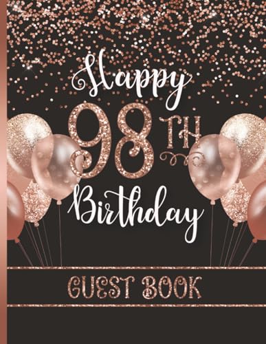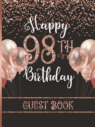 Happy 98th Birthday Guest Book: Large Party Sign-In Messages for Ninety-Eight Year Old Women with Gift Log | Keepsake for Her | Rose Gold & Black Design with Faux Glitter