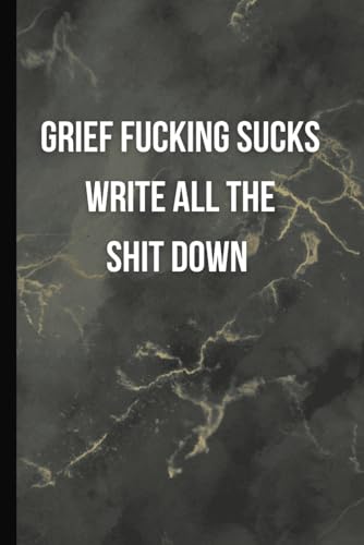 Healing Journal "Grief F*cking Sucks, Write All the Sh*t Down" Black Gold Marble Notebook | Inspirational thoughtful Gift for Her, Women, Friend, Mom ... boss student 6x9 120 College Ruled Pages