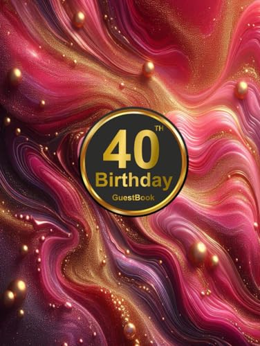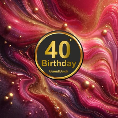 40th Birthday Guest Book – Rose Red Marble with Gold Swirls Keepsake Gift for Her Party Memory Book for Women Celebration Sign-In Journal