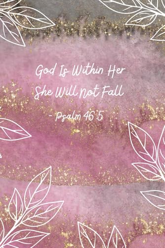 God is Within Her She Will Not Fall: Journal or Composition book. College Ruled Lined Christian Journal & Notebook for Women with Bible Verse Cover (Pink & Gold Marble Design)