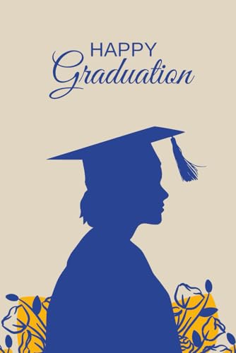 Graduation Notebook Gift – Blue & Gold Silhouette Cover with Floral Accents – 6x9” Lined Journal with Message Inside – Graduation Card Alternative for Her – 100 Pages