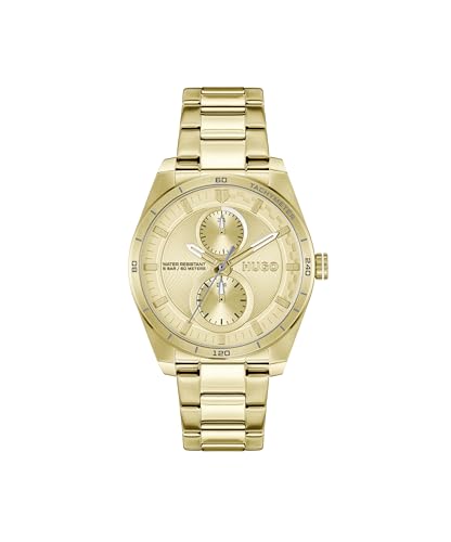 HUGO analog multifunktion kvartsur för kvinnor #Fast for Her kollektion med guldfärgat rostfritt stålarmband – 1540171, Guld