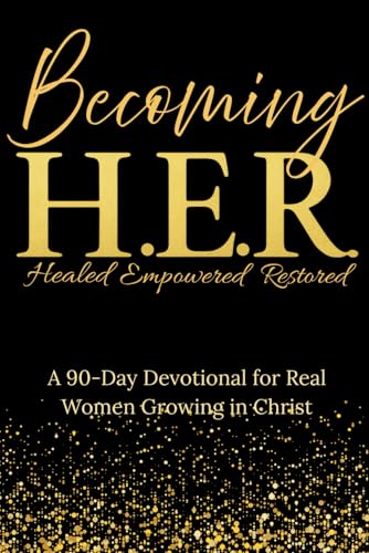 Becoming H.E.R (Healed, Empowered, Restored): A 90-Day Devotional for Real Women Growing in Christ (black and gold)