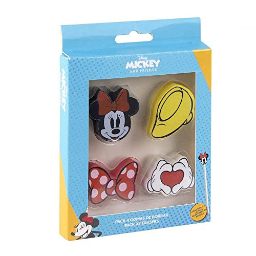 Cerdá - set med 4 Mimmi Mouse suddgummi - officiell Disney-licens
