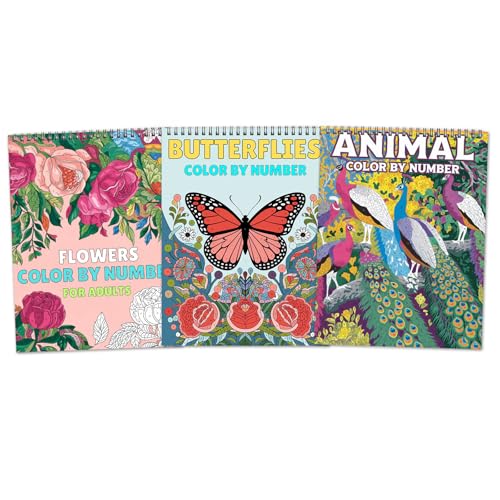 Atoke 3 färg enligt nummer målarbok för vuxna, färgbok med 60 vackra mönster av djur, fjäril och blommor, stor målarbok för vuxna för mindfulness och avstängning