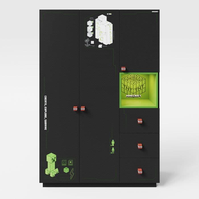 Gamer Skåp ROBA Minecraft 3 Dörrar 3 Lådor och Öppet Fack med LED-belysning