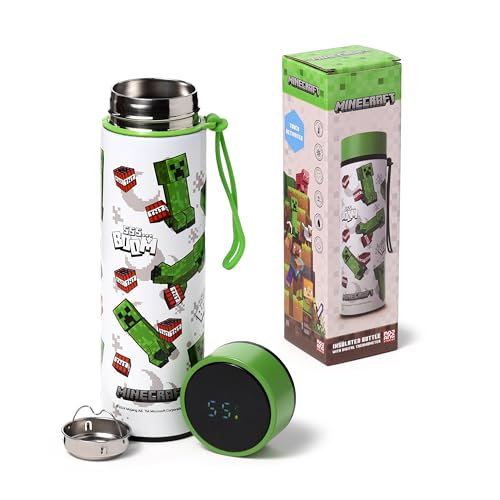Puckator Termisk vattenflaska i stål med LED-termometer - Creeper & TNT - Minecraft-vattenflaska 450 ml - dubbelväggig design