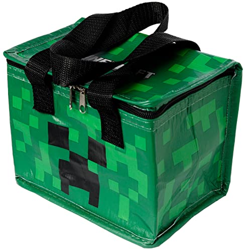 Puckator Cool lunchväska med Minecraft-ansikten design gjord av återvunna plastflaskor – isolerad lunchväska för kvinnor män barn – lunchlåda väska för arbete och skola – strandpicknick tillbehör
