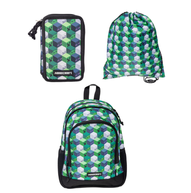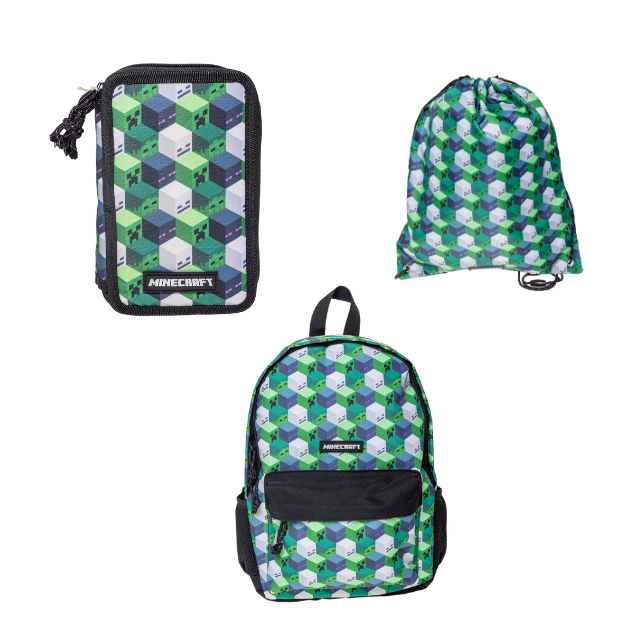 Minecraft – Backpack 38x28x13 cm + Drawstring Gym Bag 35x45 cm + Filled Double Decker (bundle)
