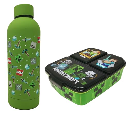 Minecraft Lunch Bag Set | Creeper Adventure för pojkar | Lunchbox, Vattenflaska & Snackkruka | Gamer Merchandise för barn | Bär med dig det pixlade äventyret i varje måltid | Minecraft Lunch Set