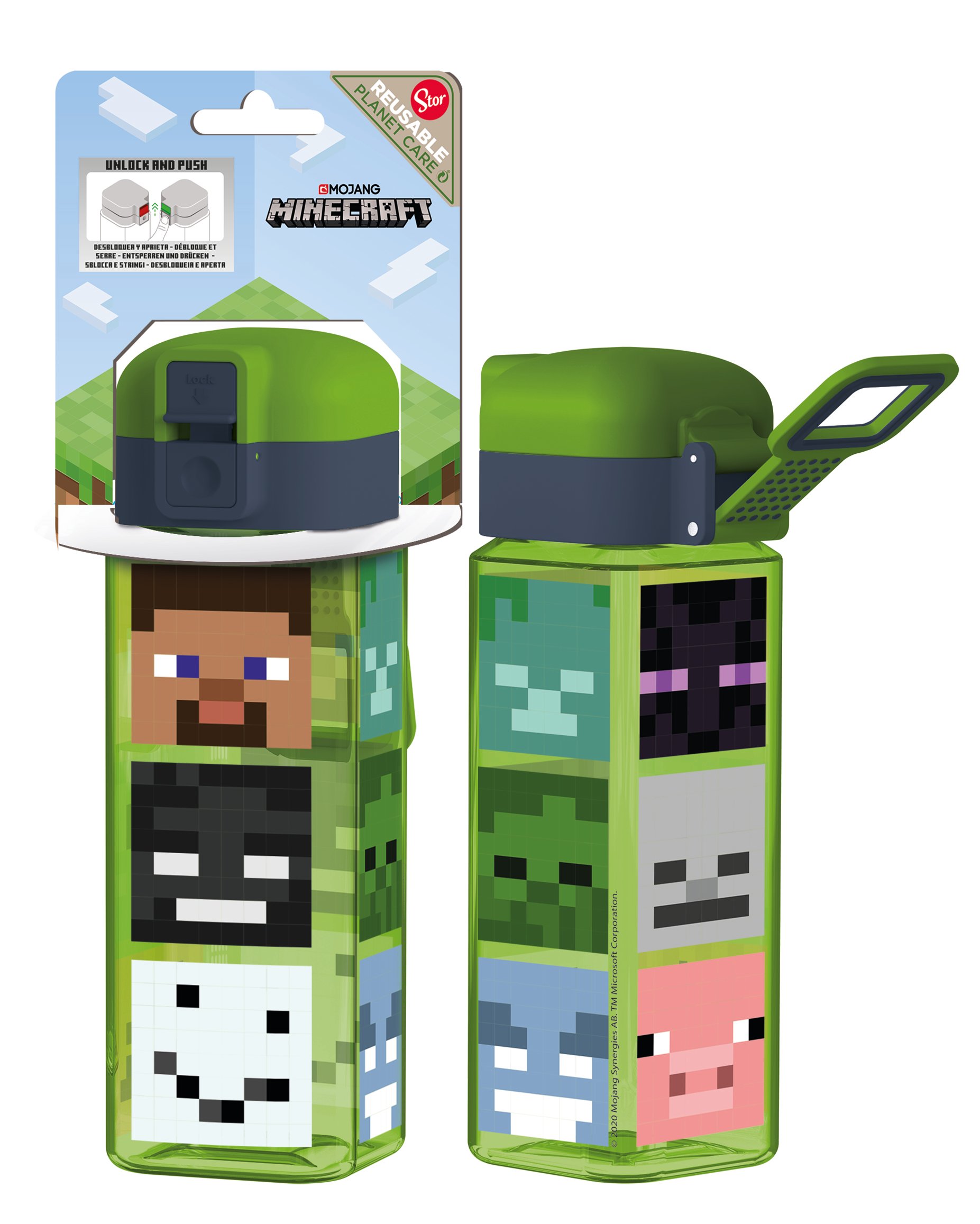 Minecraft Tritan Premium Flaska 480 Ml Vattenflaska Tillverkad Av Tritan Och Dekorerad Med Mönster Baserade På De Mest Populära Film-, Tv- Och Seriefigurerna. Tack Vare Den Automatiska Tryckknappen Med Integrerad Pip Kan Du Använda Den Om Och Om Ige