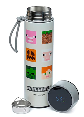 Puckator Termisk vattenflaska i stål med LED-termometer - Creeper & TNT - Minecraft-vattenflaska 450 ml - dubbelväggig design