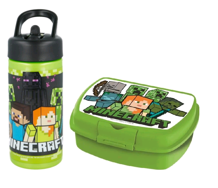 Stor - Multi Compartment Sandwich Box + Sports Water Bottle - Minecraft