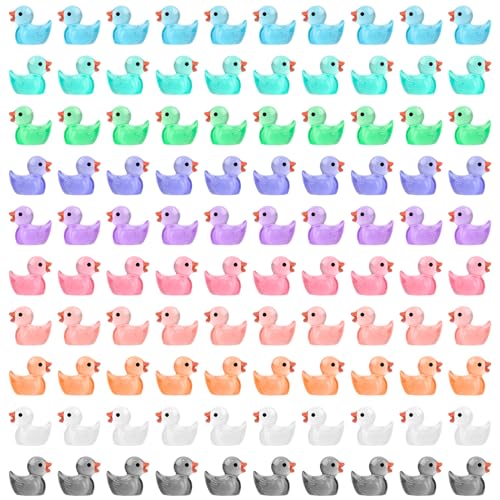 TAIXING Miniankor 100 stycken, 10 färger miniankor harts, små ankor miniatyr ankor lysande mini anka för akvarium, dockhus, miniatyrträdgård, hantverk, krukdekorationer, gör-det-själv, heminredning