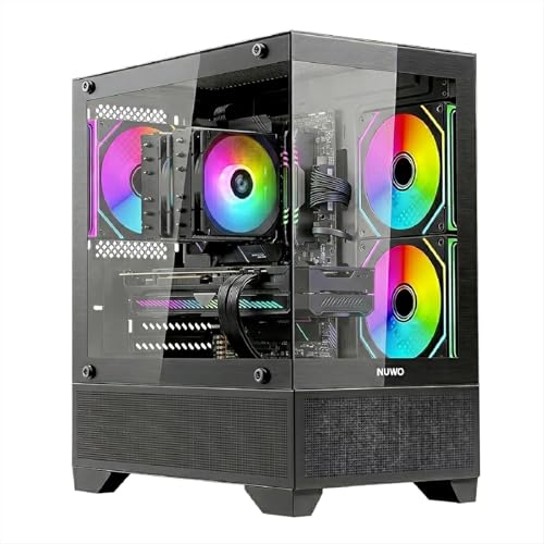 Nuwo Flow FK100 Case PC Gaming Micro-ATX Mini Tower | 3 ARGB 120 mm fläktar | Panoramisk glasfront- och sidopanel | Svart