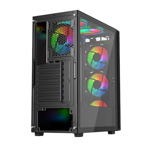 Nuwo Rodan R603 Svart Gaming Mid Tower ATX, Micro-ATX, mini-ITX, 4 ARGB 120 mm adresserbar LED-fläktar förinstallerade - Framsida med nät och sidopanel i härdat glas