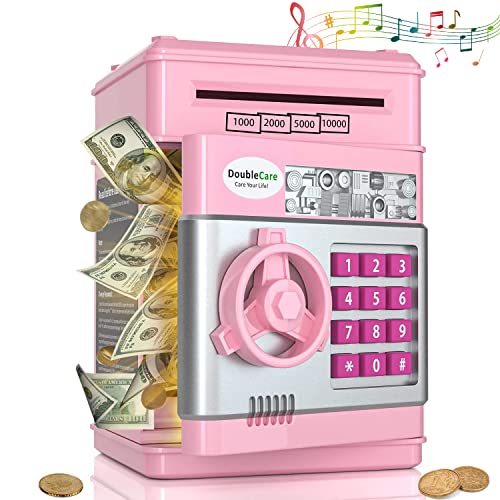 Elektroniska spargrisar för barn, sparbössa med lösenord/musik, söt mini-spargris, myntburk, auto, kontanter, kassaskåp, bra och praktiska födelsedagspresenter för pojkar och flickor (rosa)