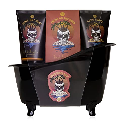 accentra - GOOD VIBES ONLY bad- och duschset med doft av björk och cedert - presentset för män att koppla av på sin födelsedag - 5-delat wellness-present & vårdset med svart mini dekorativt badkar
