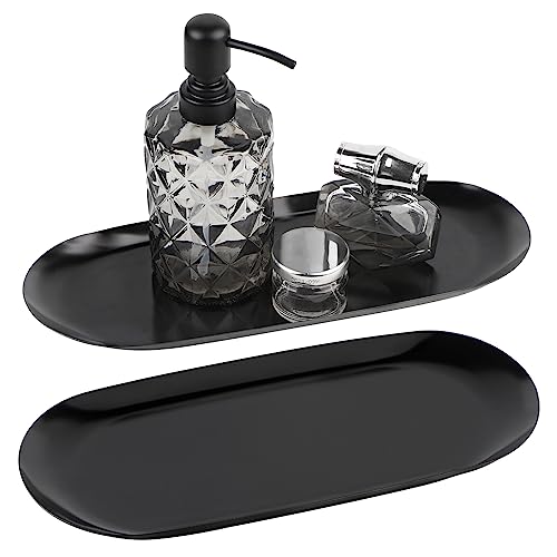 EXLECO 2 badrum dekorativ bricka svart serveringsfat mini badrum dekorativ bricka rostfritt stål serveringsbricka ljusbricka oval förvaringsskål liten bricka arrangör för kosmetika smycken ljus badkar