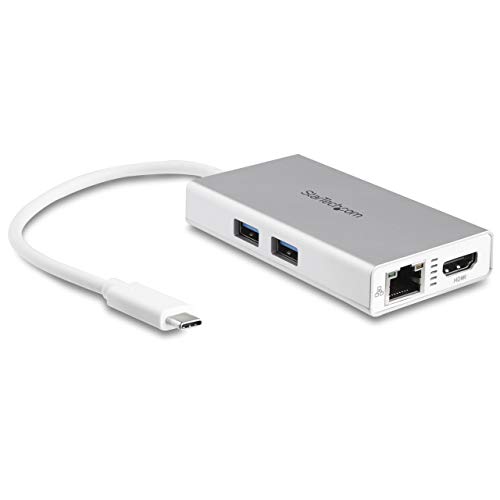 StarTech.com USB-C multiportadapter – 4K HDMI-resedockningsstation med 60 W strömförsörjning, GbE, USB-A 3.0 hubb – bärbar mini docka för bärbar dator – vit (DKT30CHPDW)