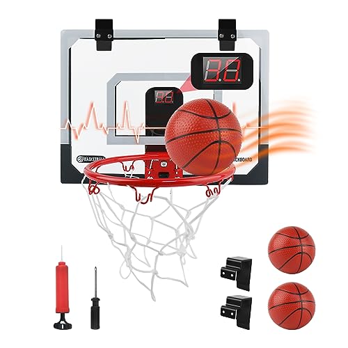 Locisne Mini basket inomhusram med elektronisk poängbräda, 40 x 30 cm mini bakbräda, kompletta tillbehör väggmonterad utomhus sport spel presentförpackning för pojkar flickor vuxna