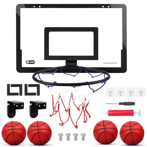 TEUVO Mini basket ringleksaker för barn ålder 8, 9, 10, 11, 12 år, inomhus, basketring över dörren med 4 bollar för sovrum, monterad utomhus, miniring på dörr, sport, spel, leksak, gåvor för pojkar