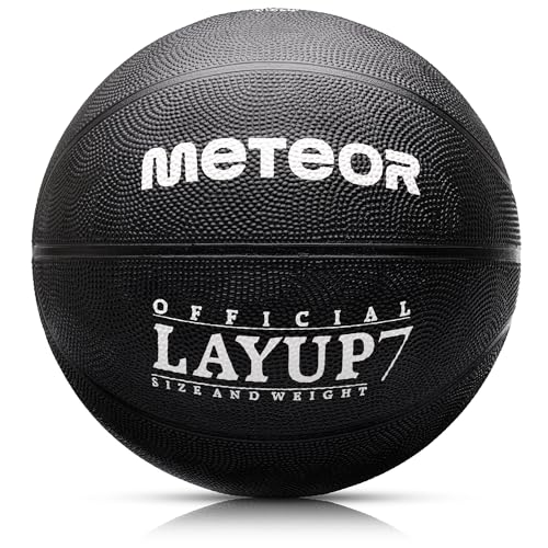 meteor® Layup Mini basketboll för barn, perfekt anpassad till ungdomar, barnhänder från 4–8 år, perfekt basket för träning av mjuk basket (storlek 7 (män), svart)