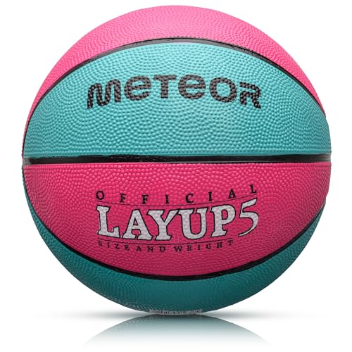 meteor® Layup Mini basketboll för barn, storlek #5, perfekt anpassad till ungdomar, barnhänder från 4–8 år, perfekt basket för träning av mjuk basket (storlek 5 (barn), rosa och blå)