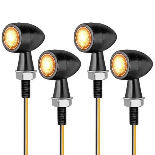 JMTBNO Motorcykel Mini Blinkers Motorcykel Indikatorer Bärnsten LED Vänd Signalljus Flyttande Styre Ljus E-24 12V för Cruiser Chopper Bobber Scooter Cafe Racer