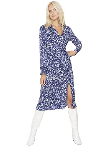 TRENDYOL Dam Mini A-linje Boat Neck vävd klänning för kvinnor, blå, 34