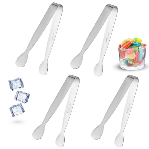 Mini sockertång 4 stycken köksmetalltång, grilltång liten, mini sockertång rostfritt stål tänger 11 cm liten tång för glass, sallad, brödrost, desserter, förrätter, buffé, matlagning, bakning och