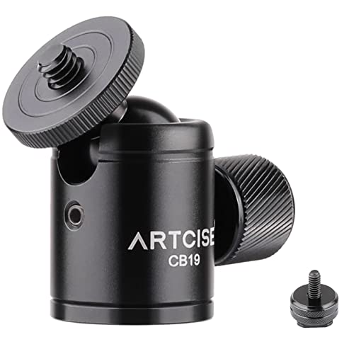 Mini kulhuvud ARTCISE CB19 stativ kulhuvud med avtagbar 1/4 het skoadapter, 360 roterande CNC panoramakula kamerafäste för smarttelefon/DLSR-kamera/ficklampa/skärm, maxbelastning 3 kg