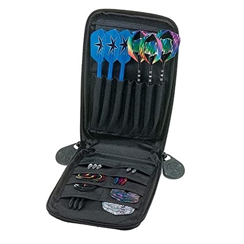 Casemaster Mini Pro svart konstläder dart fodral med plats för 6 pilar, stålspets eller mjuk spets, med smal profil läderliknande täckning och inbyggda fickor för flyg, axlar och tips
