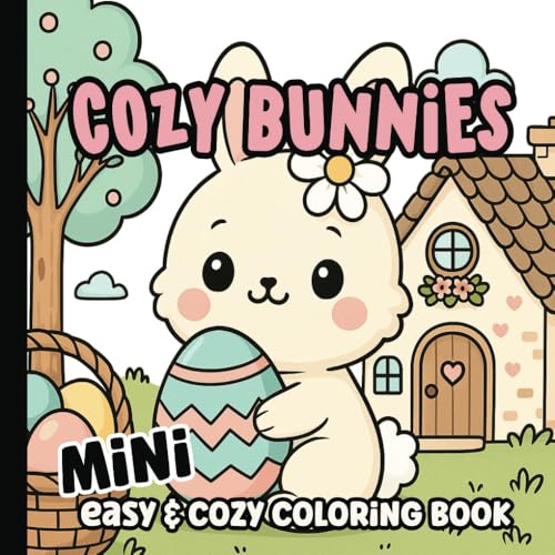 Mini Cozy Bunnies Coloring Book: Easy Spring Animals Images | Bold and Cute Bunny, Chicks, Eggs and Easter Images for Adults, Teens and Kids | 6 x 6 inches