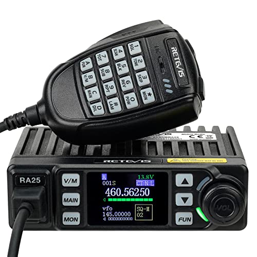 Retevis RA25 Bärbar Sändarmottagare, Dual Band Dual Monitor, 500 Kanaler, FM-Radio, 5 Ton / 2 Toner/DTMF, 1,44 Tums TFT-Skärm, Mini Mobilradio, Rädda, Nödsituation (1 Bit, Svart)