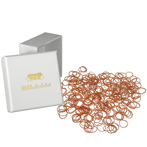 HAARallerliebst Hårsnoddar gummiband mini små (250 stycken | brun | 1 cm) inkl. låda för förvaring (medelbrun; askfärg: vit)