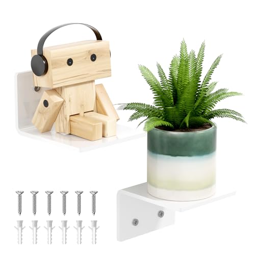 HENGBIRD Svävande hylla vägg set om 2, mini svävande hylla vit akryl svävande hylla vägg vägghylla tavelremsa vit för sovrum badrum kök kryddhylla vägg vardagsrum kontor djup 10 cm x bredd 23 cm