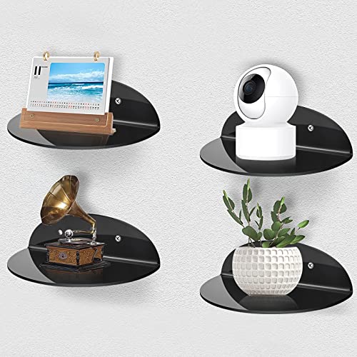 Twirush svarta flytande vägghyllor set med 4, mini självhäftande vägghylla liten flytande hylla, inga borrdisplayhyllor, expandera enkelt väggutrymme svarta hyllor för sovrum, vardagsrum, badrum