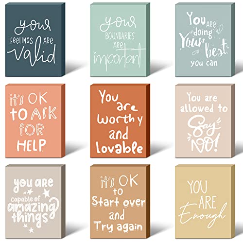 9 st påminnelser för mental hälsa bordsdekor träskylt positiv psykologi uppmuntringar känslor hylla dekorer inspirerande psykisk hälsa tips mini dekorer för hemrådgivning kontor studenter klassrum