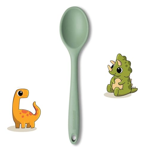 Fackelmann Mini kökssked av silikon med hylla i rostfritt stål, grågrön, värmebeständig upp till 230 °C, perfekt för belagda köksredskap, diskmaskinssäker