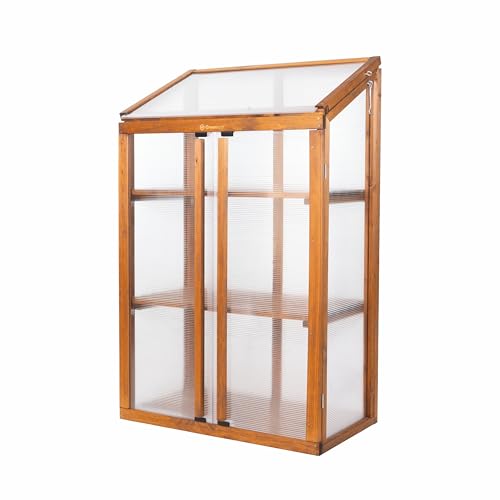 Greenspot - Balkongväxthus - Mini Växthus - 80x42x121cm LxDxH - Trä och plast, Maximal belastning per hylla 50 kg - för örter, plantor, terrass - Ursprung Brun Rosenträ