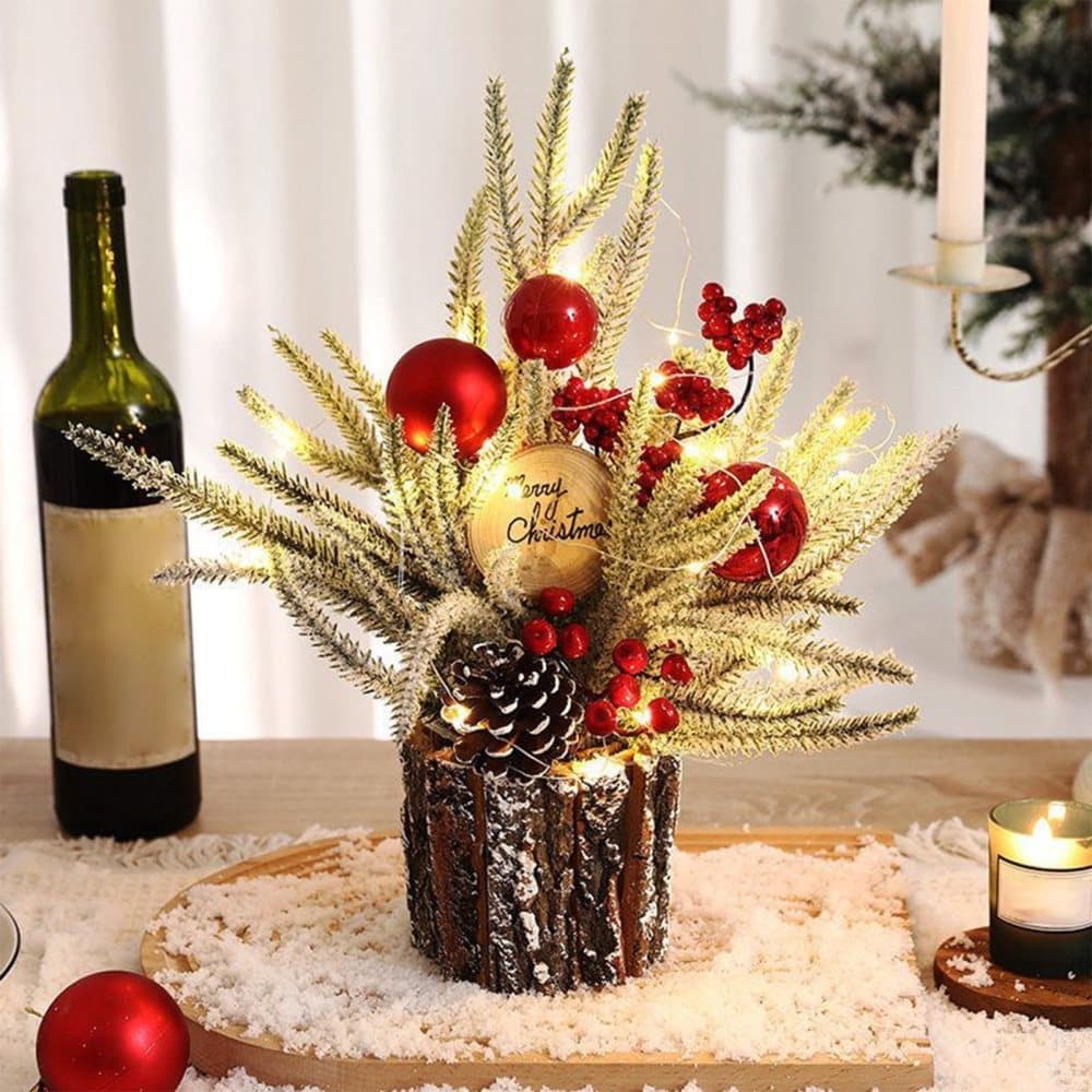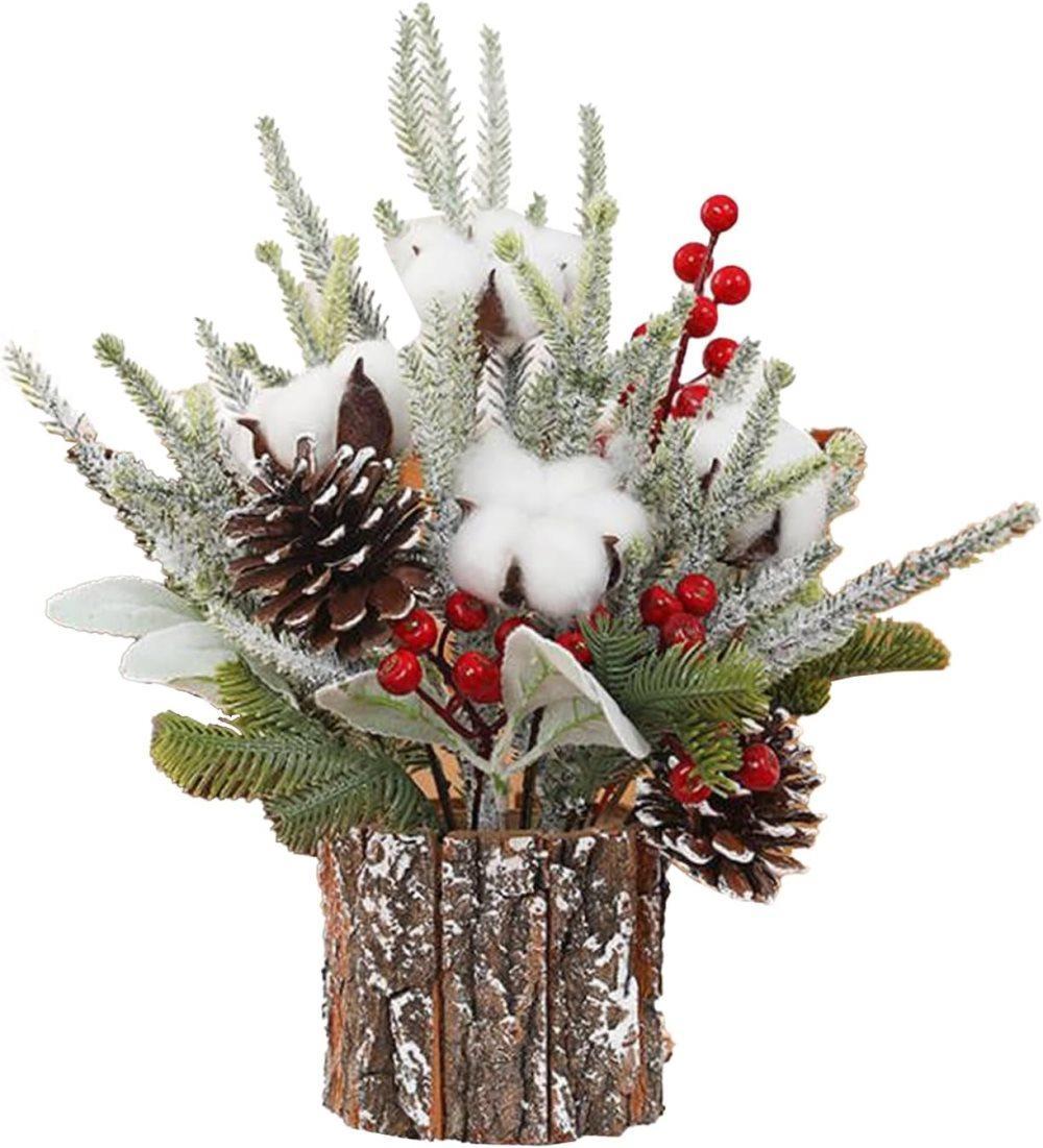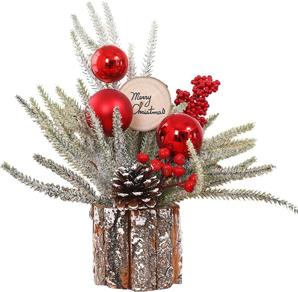 OBOSOE Bordssjulgran med Kottar och Bär – Konstgjord Mini Julgran för Hem & Festdekoration