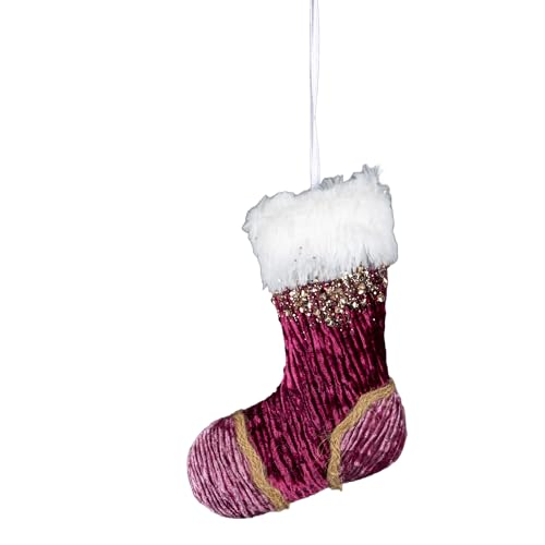 Rosa vinröd mini jultomte strumpa 15 cm – julgran hängande dekorationer festliga dekorativa ornament saga tema julgran hänge