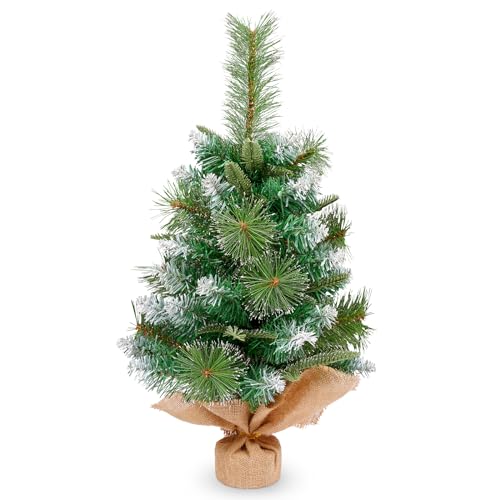 Mini julgran, 60 cm liten julgran med snöiga blandade tallnålar dekoration för jul, kontor vardagsrum kök fönsterbräda jul skrivbord, matbord