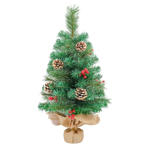Mini julgran, 60 cm bordsdekoration julgransprydnader med tallkottar och röda bär dekoration för jul, hem, kök, matbord dekor