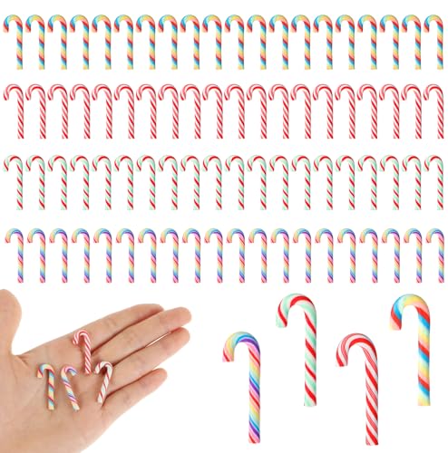 JIEYAO 80 st mini jul polkagrisar, lera falsk godis juldekor, inga hål hängande polkagris prydnader små färgglada gör-det-själv-hantverk tillbehör pepparmynta tillbehör för julgran gör-det-själv fest