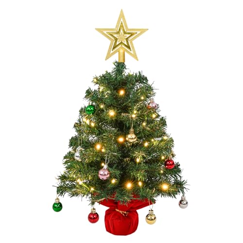 CORST Mini julgran 50cm konstgjord mini julgran batteridriven belysning med julgranskulor för jul, hem, kök, matbord dekor